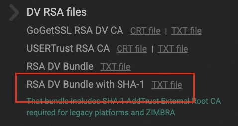 박스가 펼쳐진 부분이 Certification Chain 여기에 접속하시면 위 화면을 볼 수 있습니다. RSA DB Bundle with SHA-1을 클릭하면 Certification Chain을 확인 할 수있고 이값을 그대로 복사해서 기입하면 인증서 등록에 성공하게 됩니다!