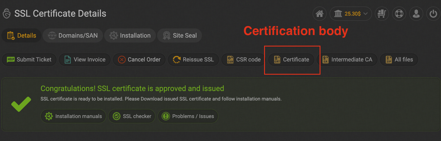 certification body에는 gogetssl 인증서에 보면 Certificate가 있습니다. 클릭하면 crt 확장자 파일이 다운됩니다. 파일을 열면 certrication key가 있는데 그걸 그대로 복사해서 넣으면 됩니다.