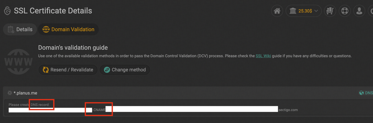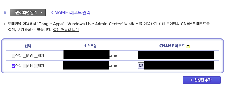 후이즈에 등록된 도메인 관리 페이지에서 SSL Validation을 위한 CNAME을 입력한다.