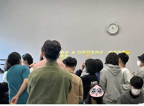 아이디어 발표 및 하고싶은 아이디어 선택 제출된 아이디어가 엄청 많아서 제안자들이 가볍게 어필하는 시간을 가졌습니다. 이중에서 크루들이 선택한 아이디어 중 몇 가지를 해커톤으로 진행하는 방식이었습니다.