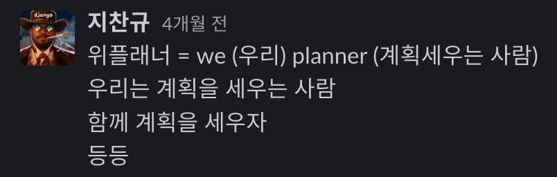 새로 TF가 꾸려지면서 서비스 네이밍도 새로 지었습니다. 위플래너라는 이름이 이미 있기도 했고 좀 더 적합한 네이밍을 찾기로 했습니다. 팀원들의 많은 아이디어 중 마케터 분이 추천한 이름이 채택되었습니다.