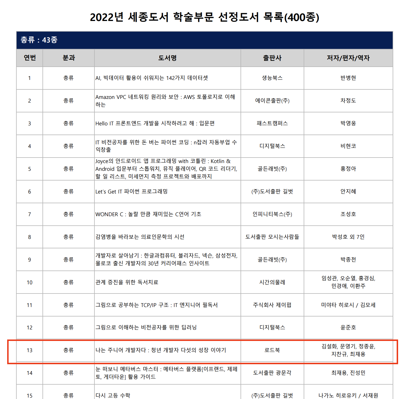 4. '나는 주니어 개발자다' 세종도서 학술 부문 선정