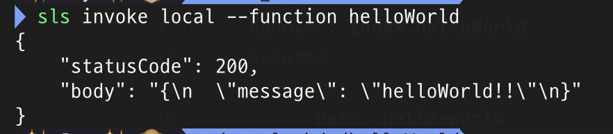 sls invoke local --function helloWorld