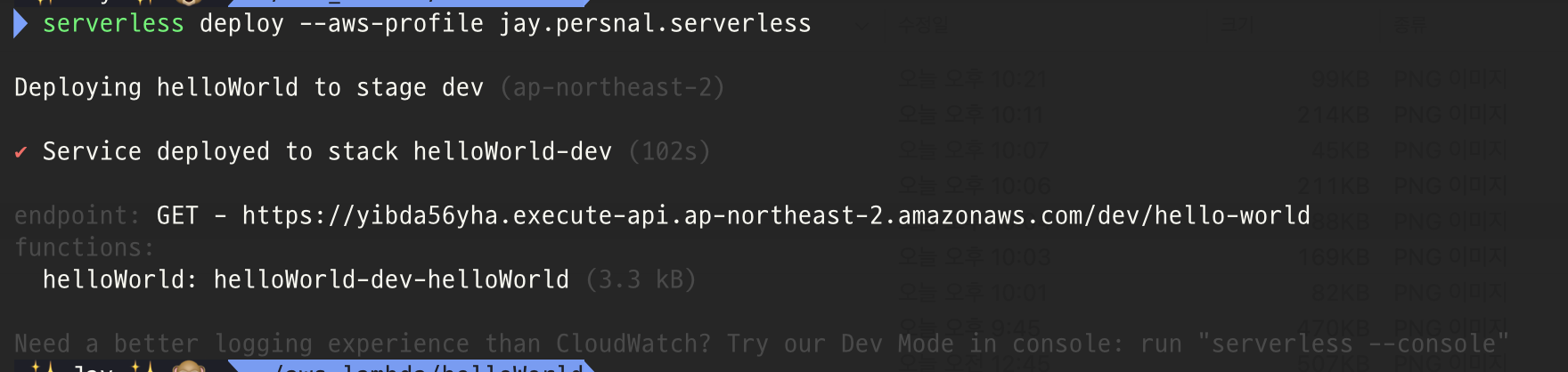 serverless framework docs에 설명이 잘 되어있어서 크게 어려운 부분은 없었는데요. 다만 권한 설정하는데 시간을 많이 소비했던 것 같습니다.