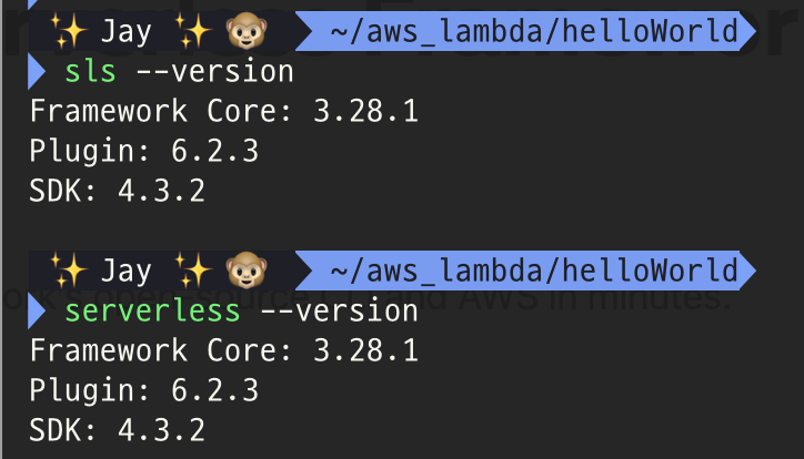 serverless --version 혹은 sls --version