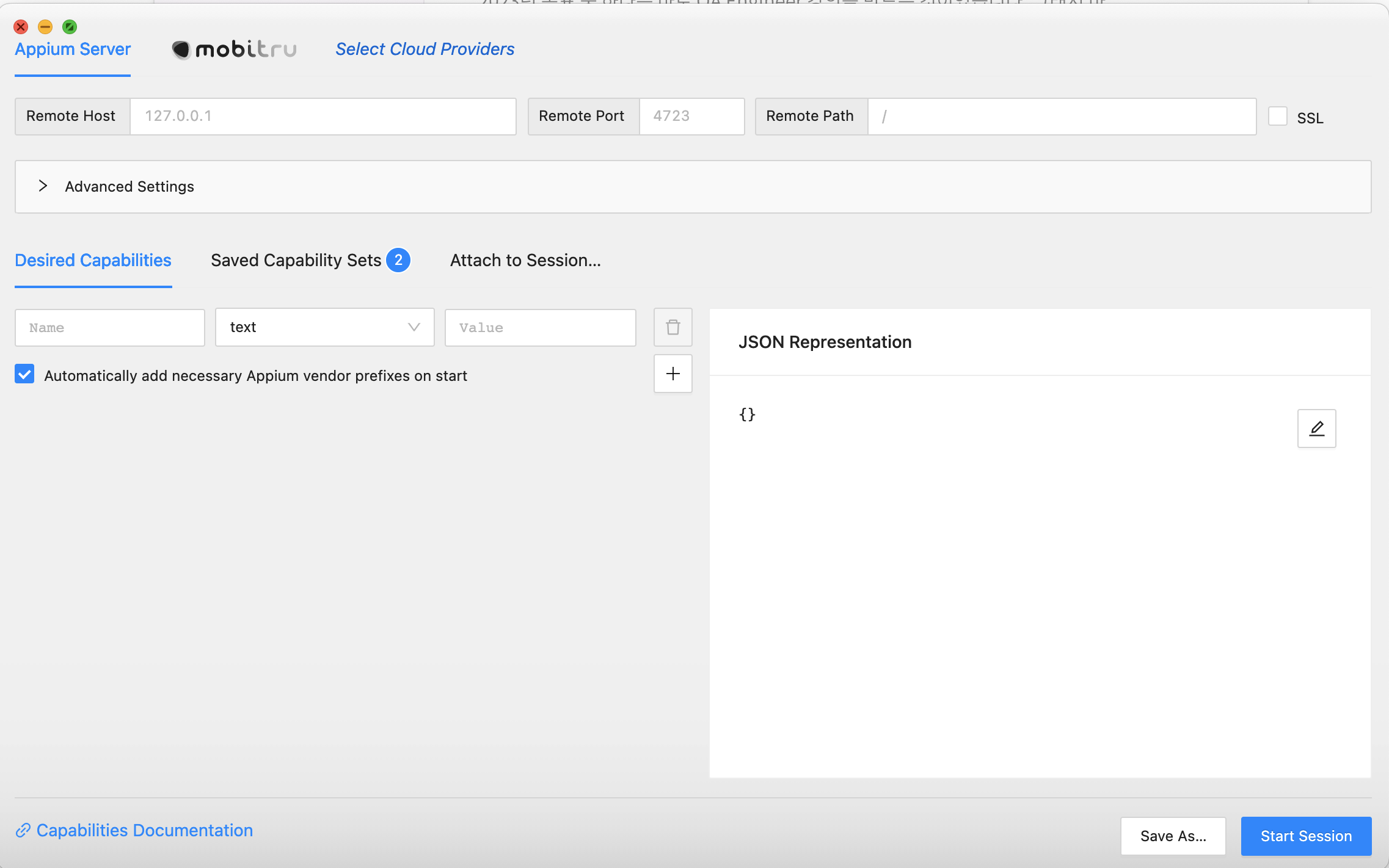 capability가 입려된 Appium-Inspector Capability에 대한 자세한 내용은 capabilites.md를 참고해 주세요!
