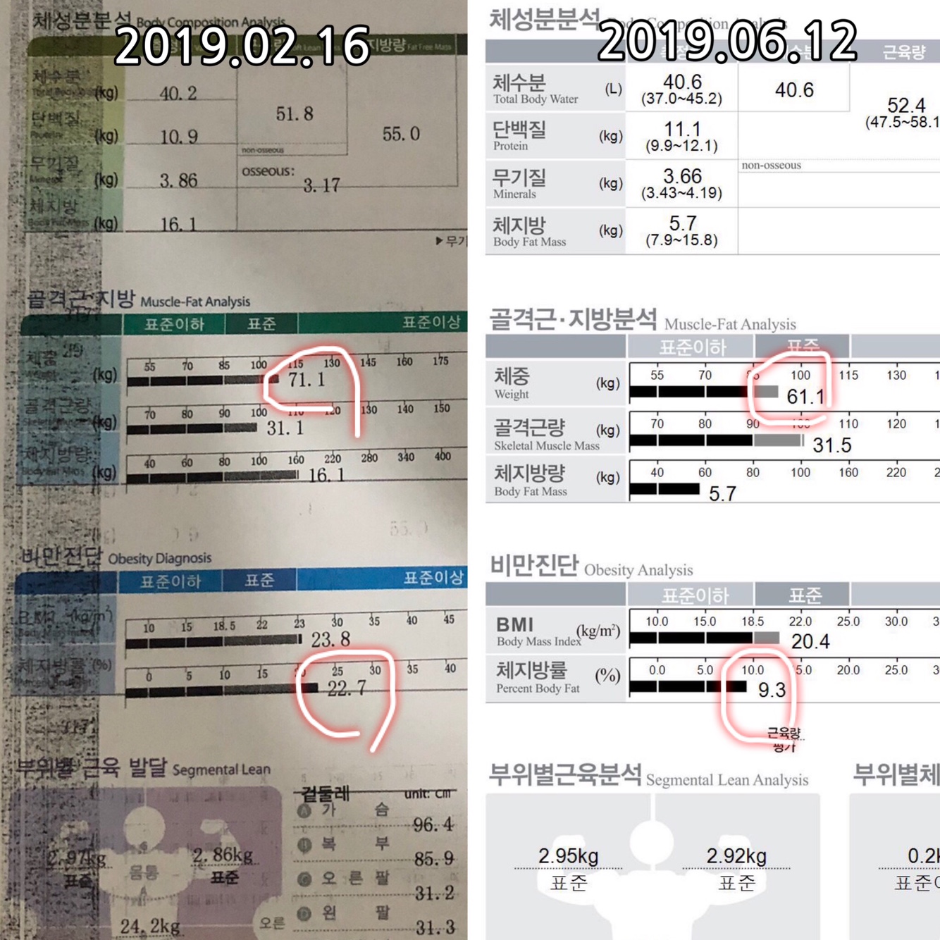 다이어트 기간 인바디 변화, 바디프로필 찍기 전 몸상태(무보정)