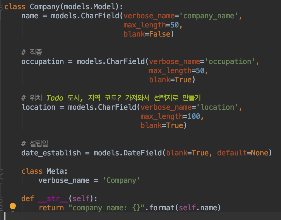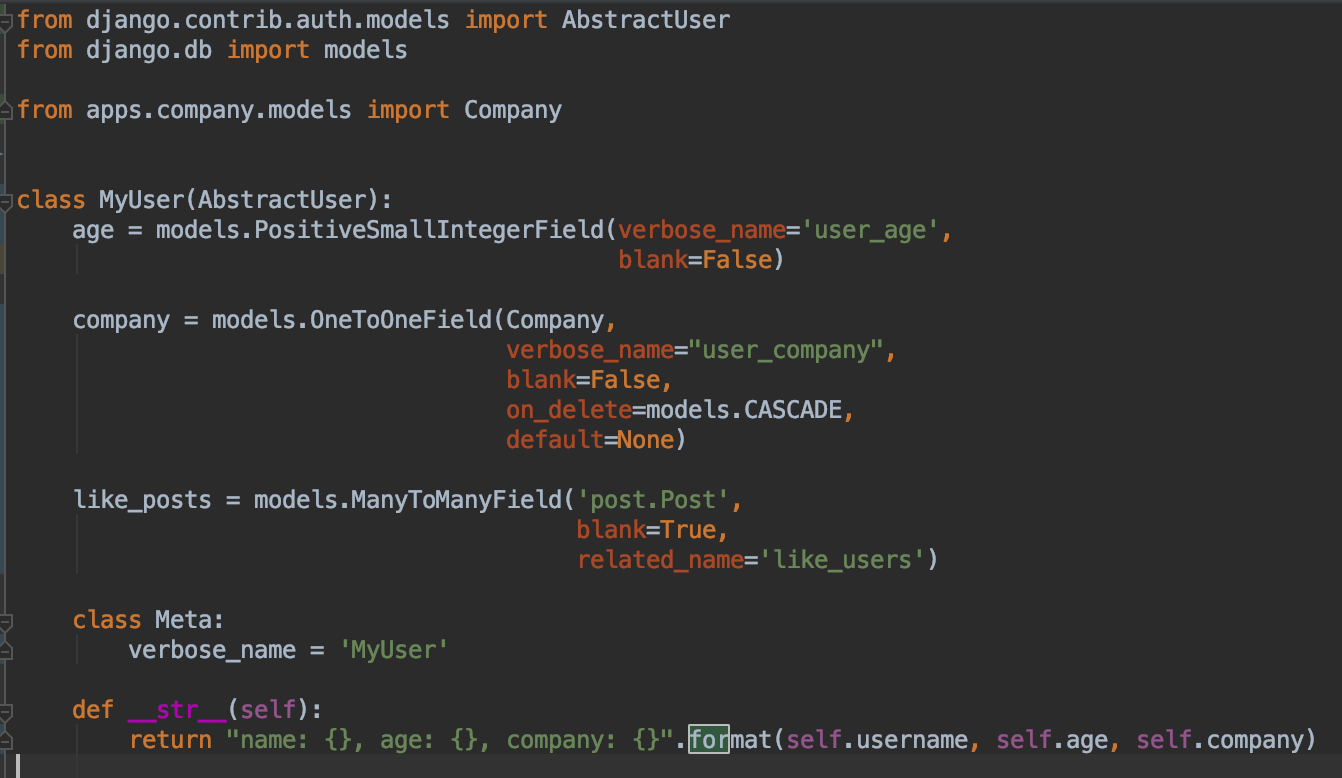 위처럼 Company 모델과 MyUser 모델이 이 정의 있으며, 두 모델의 관계는 OneToOne입니다.