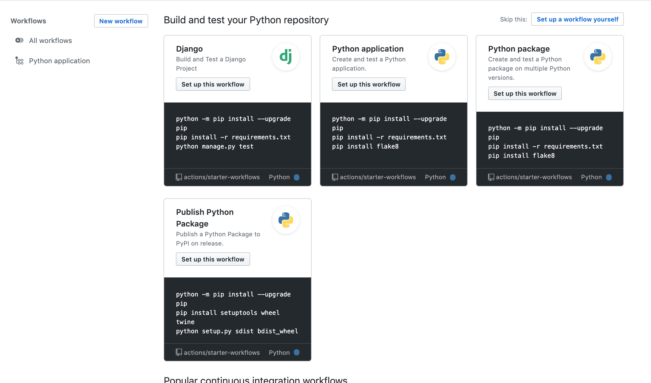 2번의 과정까지 하면 기초작업은 끝납니다. 저는 django-pytest를 master에 PR, Push 할 때마다 실행하는 workflow를 만들어 보겠습니다.