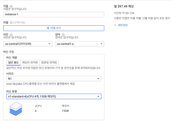 처음 서버를 구성했던 스팩 무튼, 이래저래 해서 서버 비용을 줄이고자, 성능이 낮은 (cpu 1개, 1.7GB 메모리) 스펙으로 다시 서버를 만들었습니다.