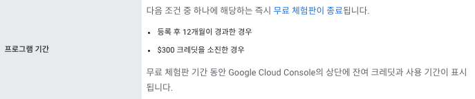 설명에 12개월 무료 체험판 + 300달러의 크레딧 제공이라 되어 있어서, 1년 동안 매달 300달러 쓸 수 있는 걸로 착각(?)을 한 결과...