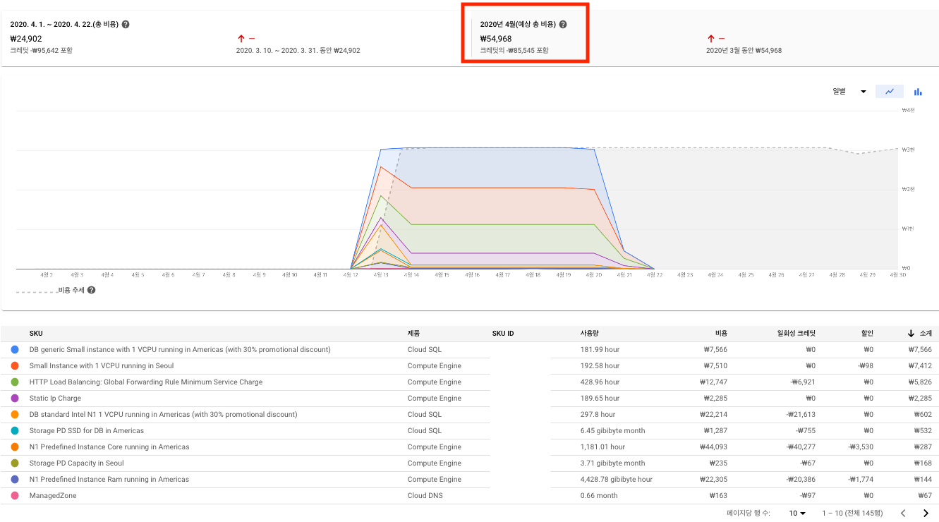 근데 정말 최소로 해도 Web Server + DNS + Load Balance + MySQL Server 등 이렇게 사용하다 보니 한 달 서버 비용 예상 금액이 8~10만 원 정도....(🐶비싸네...)