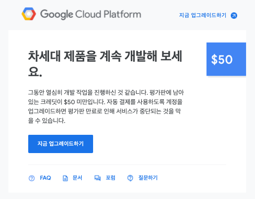 GCP에서 날라온 한통의 편지= 엥? 업데이트 하라고? 사실 이 메일도 시간이 좀 지나고 확인했습니다 😓