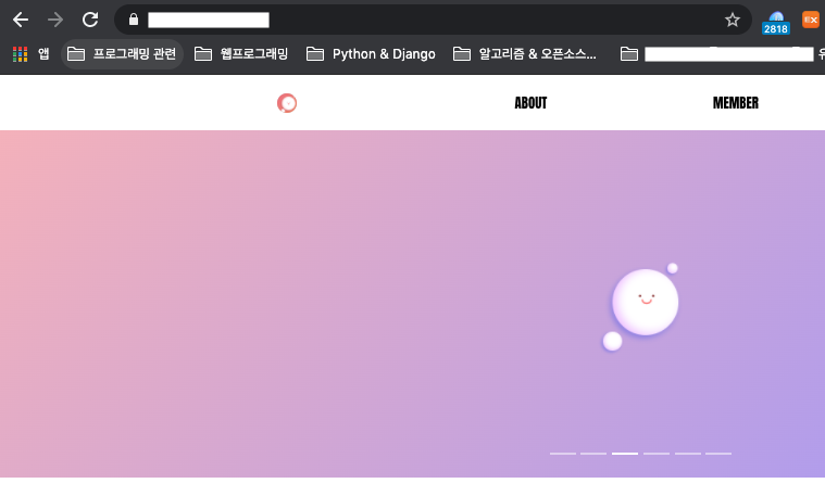 크롬에서 접속한 화면 짜잔! 이렇게 나옵니다! 도메인은 나중에 다 완성되면 공개하고 싶어서 가렸습니다 ㅎㅎ (조금만 기다려 주세요)