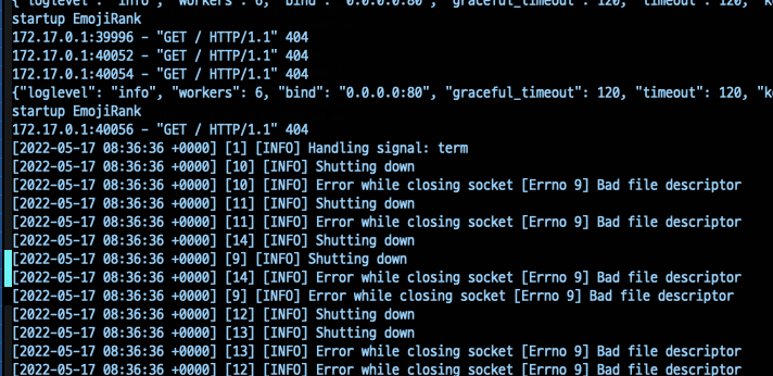 파드 로그 보니까 / 경로를 어딘가에서 호출하는데 계속 404를 리턴해주고 결국 shutting down을 진행합니다.