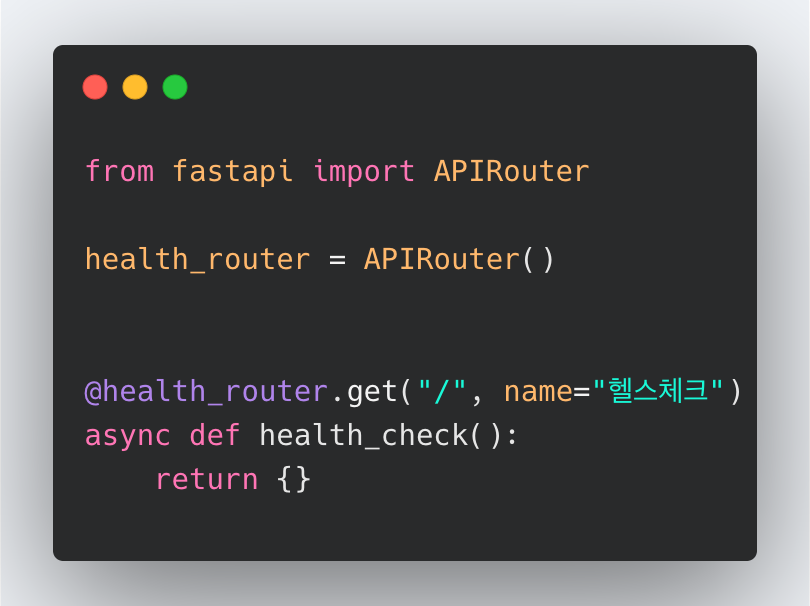 경로설정을 해주었다 저는 헬스체크 api 경로를 이렇게 해주었습니다.