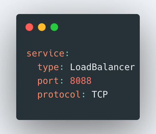외부 연결은 service.yaml 에서 설정할 수 있습니다.
