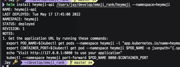 미니쿠베 로컬에 저장되어있는 heymoji 이미지 이상태에서 helm으로 배포를 해보겠습니다.