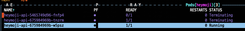 새로운 파드가 띄워지고 기존 파드가 종료