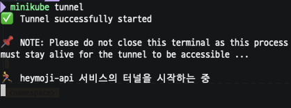실행 결과 뭔가 터널을 열어주다? 이런 의미인가?? 실제 쿠버네티스와 이 부분이 조금 다르다고 하는데... 어쨌든 위 명령어를 실행하고 다시 service를 확인하면